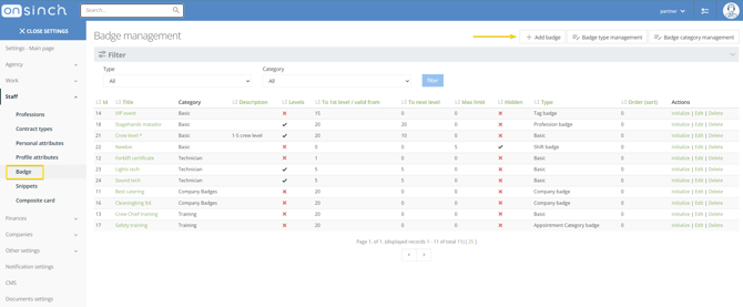 Visit Setting → Staff → Badges to add, edit end remove your badges.