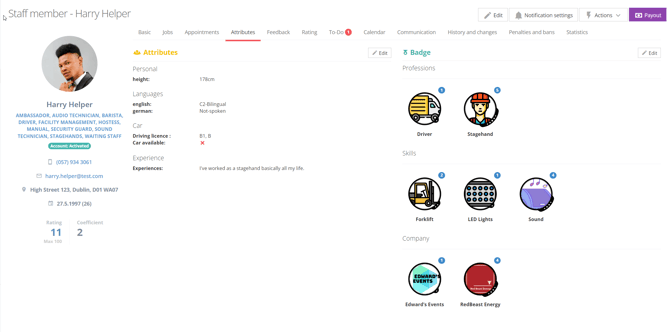 Badge is connected to a specific company you are providing services for. Staff member gets automatically 1 point for each shift worked for this company.
