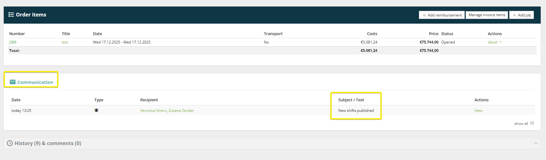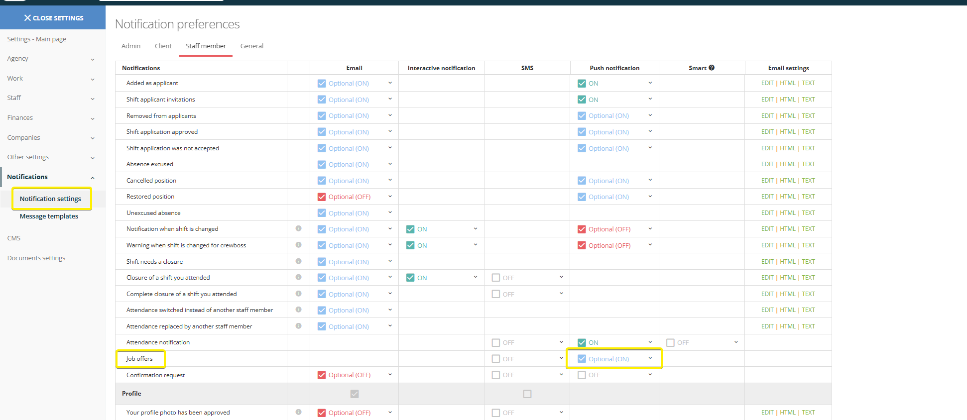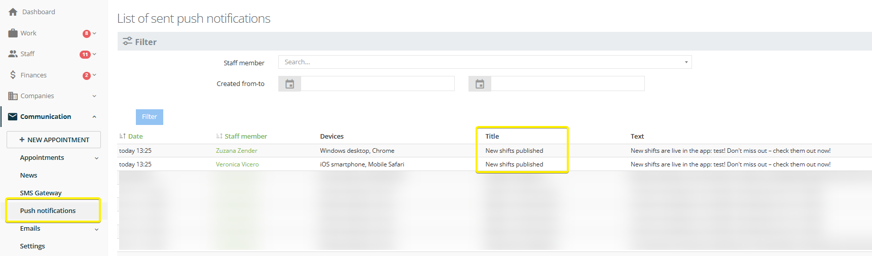 The notification about newly published shifts are sent automatically the form of push notifications from an order level.
