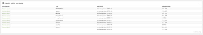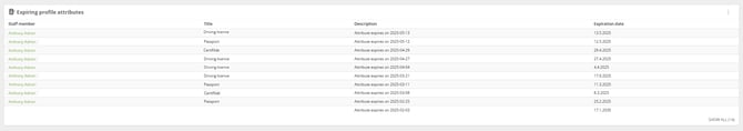 Always be alerted to your staff members' attributes with expiration dates so you can take action. Useful when your staff members upload certificates into their profile.