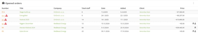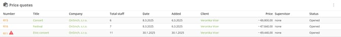 List of all open price quotes that are waiting for resolution. The red warning sign is signaling to you, that the price quote has not been active for a while.