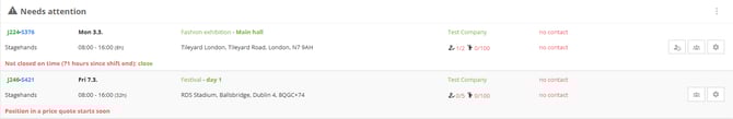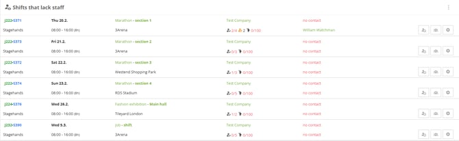 To be sure your shifts are fully allocated set this widget on your dashboard to see the ones that need your focus. You will have all the main information about the shift and position.