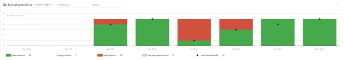 See how many empty or filled positions you have for upcoming shifts. The green box indicates your total amount of filled positions and the red one shows you how many positions are not filled yet.