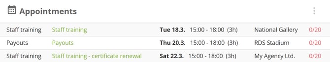 List of upcoming appointments and all important information. Get a first-glance awareness of meetings like staff training or payouts.