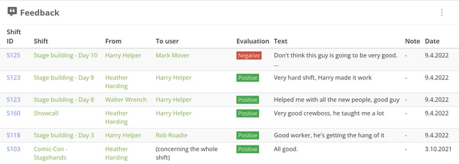 To always be in the know about recently finished shifts and how they went, set a feedback widget on your dashboard. It will show you the shift associated, with what the feedback was given to, the type of feedback, and others.