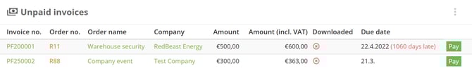 Unpaid invoices